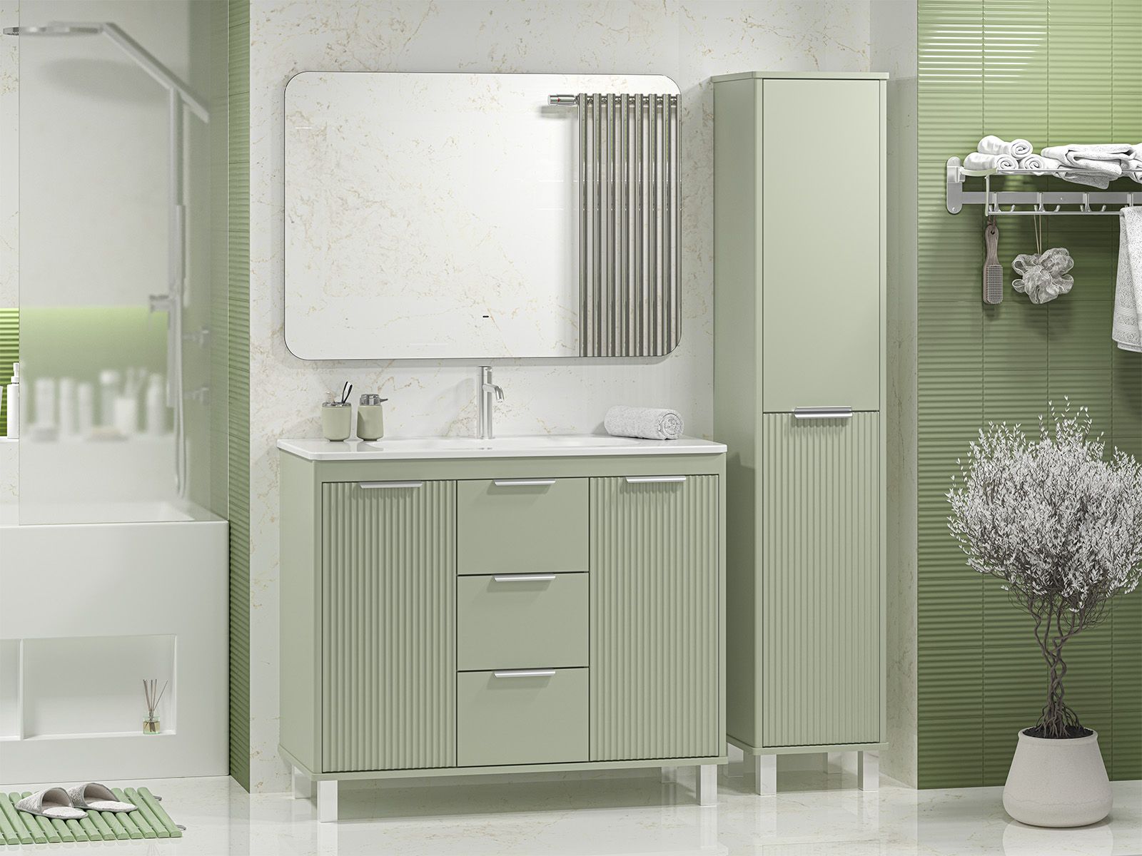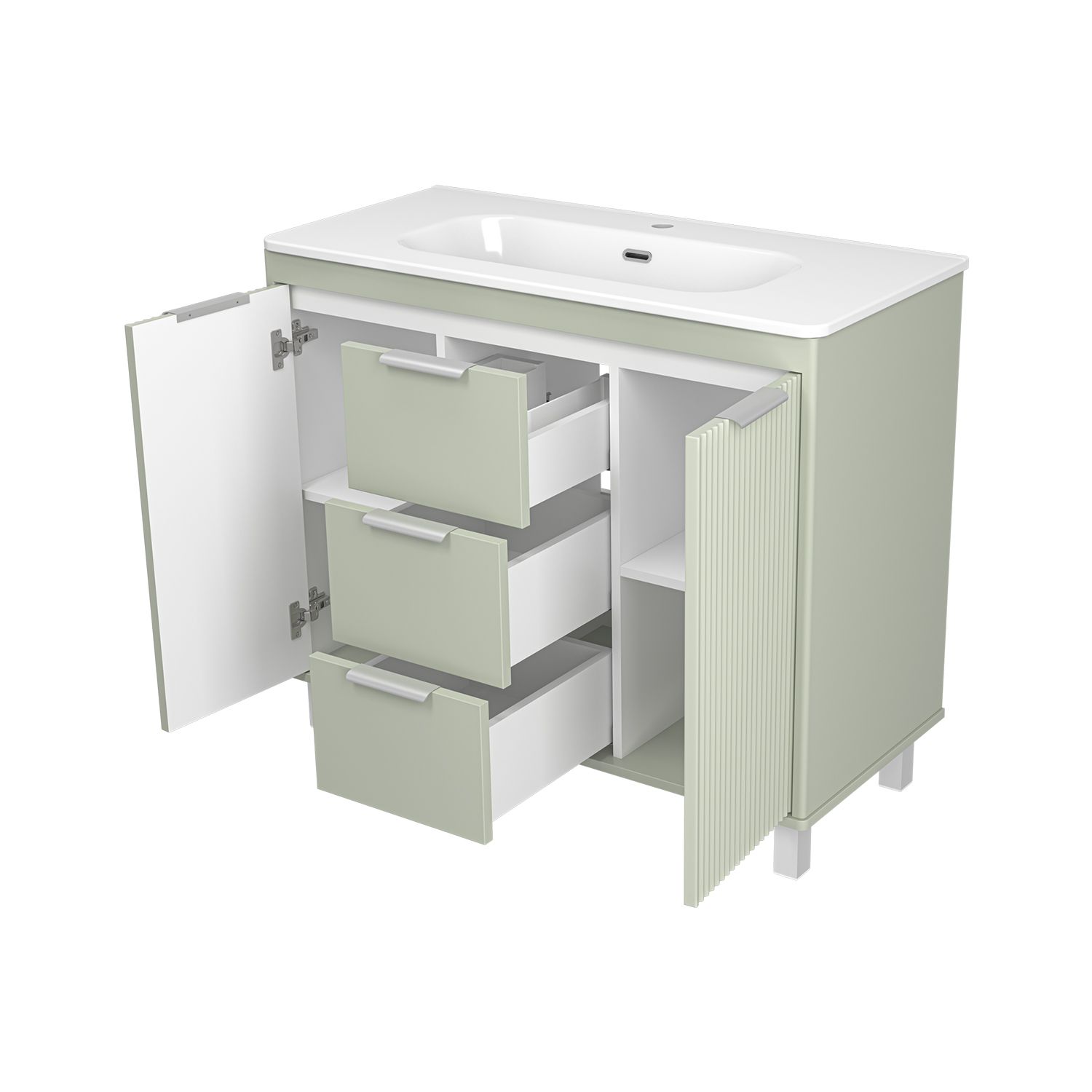 RISACCA pistachio -100 Тумба напольная 2 дв.3 ящ. мат. эмаль + раковина