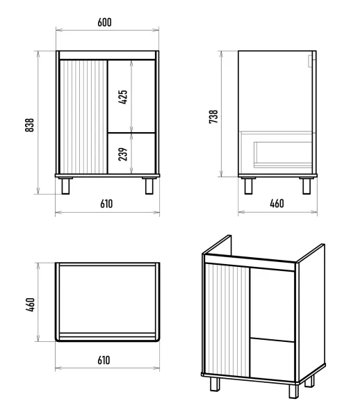 Размер тумбы, мм (ш/г/в): 604x460x738