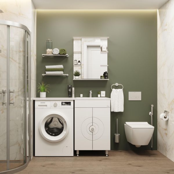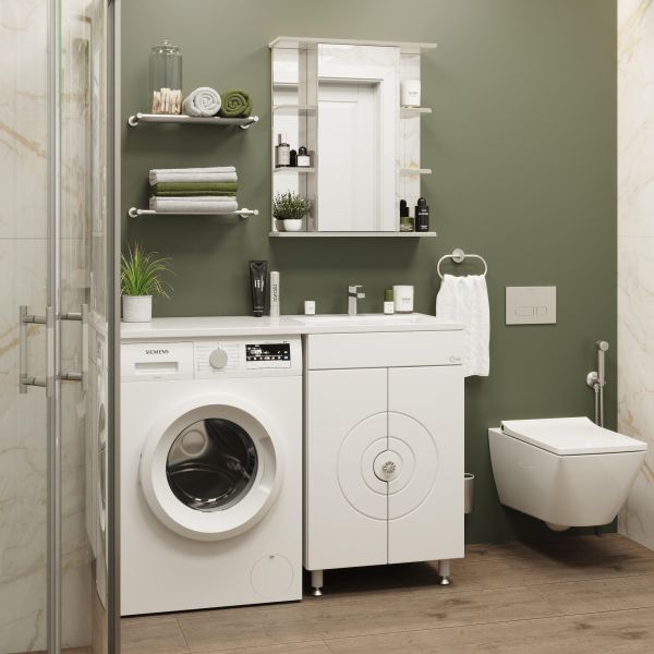 Напольная тумба Onika Космос 60 идеально подходит для небольших санузлов и станет прекрасным решением для совмещения со стиральной машиной.