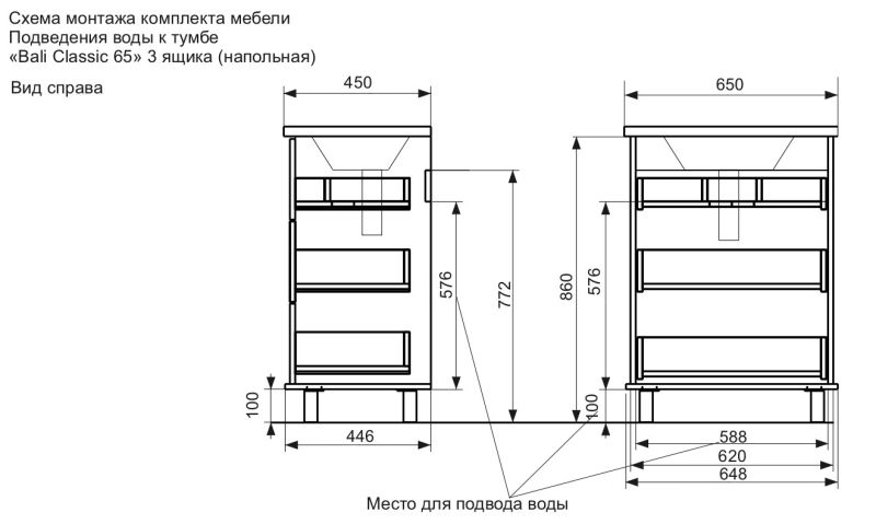 Напольная тумба под раковину Эстет Bali Classic ФР-00002143 65см три ящика белый купить