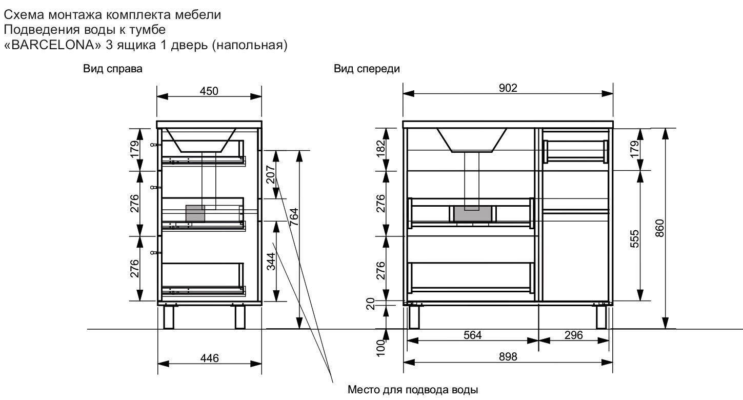 Напольная тумба под раковину Эстет Barcelona ФР-00003580 Л 90см три ящика одна дверь купить