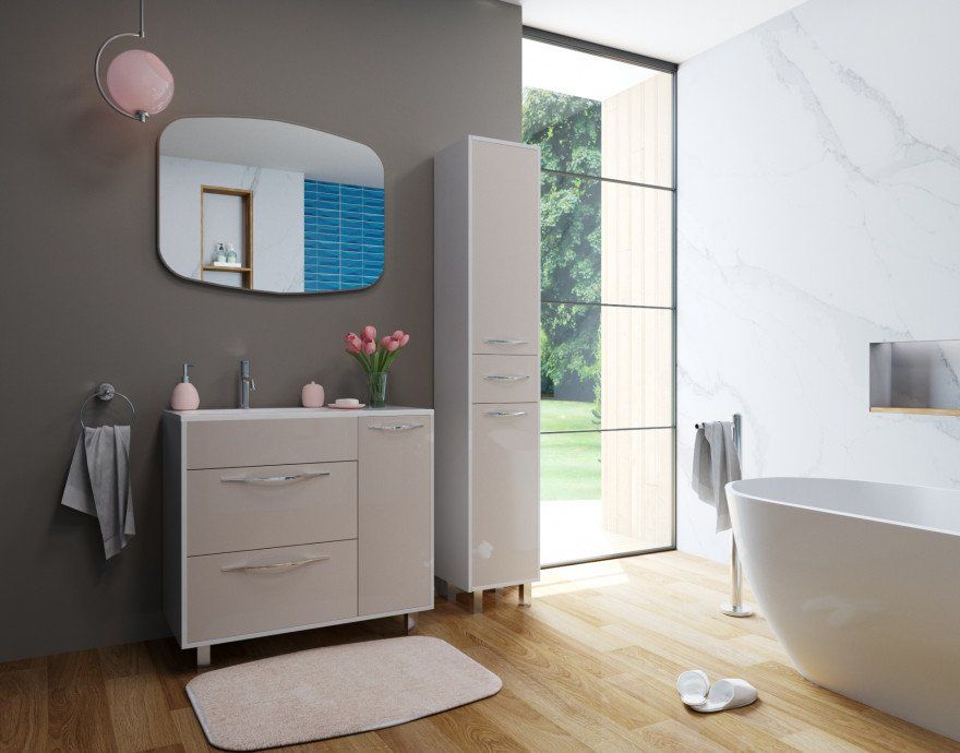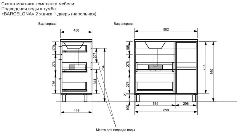 Коллекция Barcelona выполнена в стиле модерн. Плавные линии и формы подчеркивают элегантность комплекта, а разнообразие комплектации позволяет использовать мебель в качестве маркера вашего собственного стиля. За счет раковины с крылом коллекция Barcelona более вместительная и удобная. В подвесной тумбе располагаются 3 ящика и дополнительное пространство с распашной дверцей. Два ящика предполагают размещение более крупных вещей, а один ящик для мелких предметов. В секции с распашной дверцей можно разместить бытовую химиюТумба белого цвета по умолчанию. Возможна покраска по палитре RAL.