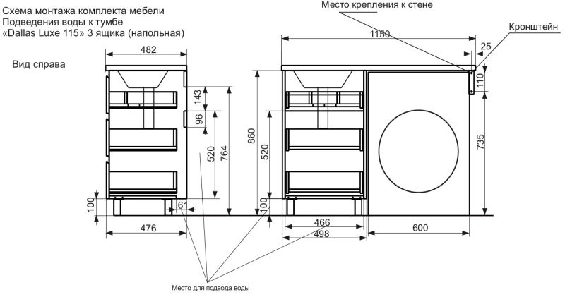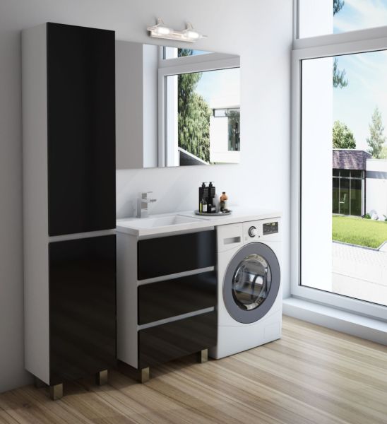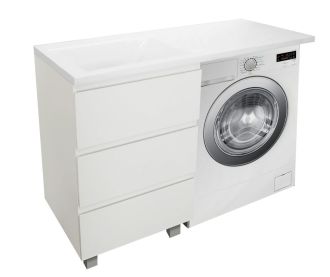 Приоритетом в выборе тумбы с раковиной является площадь ванной комнаты. Функциональная тумба с тремя ящиками решит вопрос для большинства покупателей. Тумба укомплектована раковиной из литьевого мрамора с удобной чашей, стиральная машина устанавливается под столешницей. Три ящика позволят распределить как крупные, так и мелкие вещи.