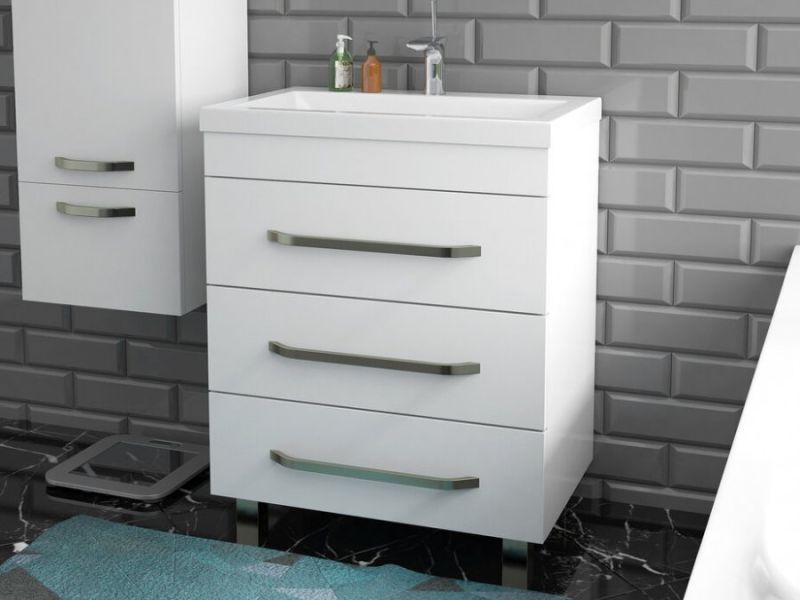 Серия Monaco выполнена в стиле хай-тек. Минимализма и четкости форм в ванной комнате поможет добиться именно этот стиль. Линии простые, строгие, жесткие. Тумба имеет три выдвижных ящика и удобные хромированные ручки.