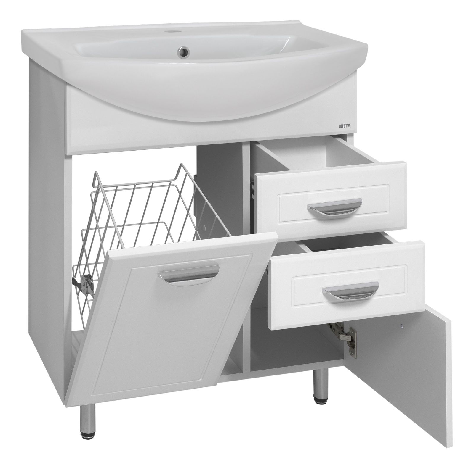 Напольная тумба под раковину Misty Дрея 65см с бельевой корзиной белый
