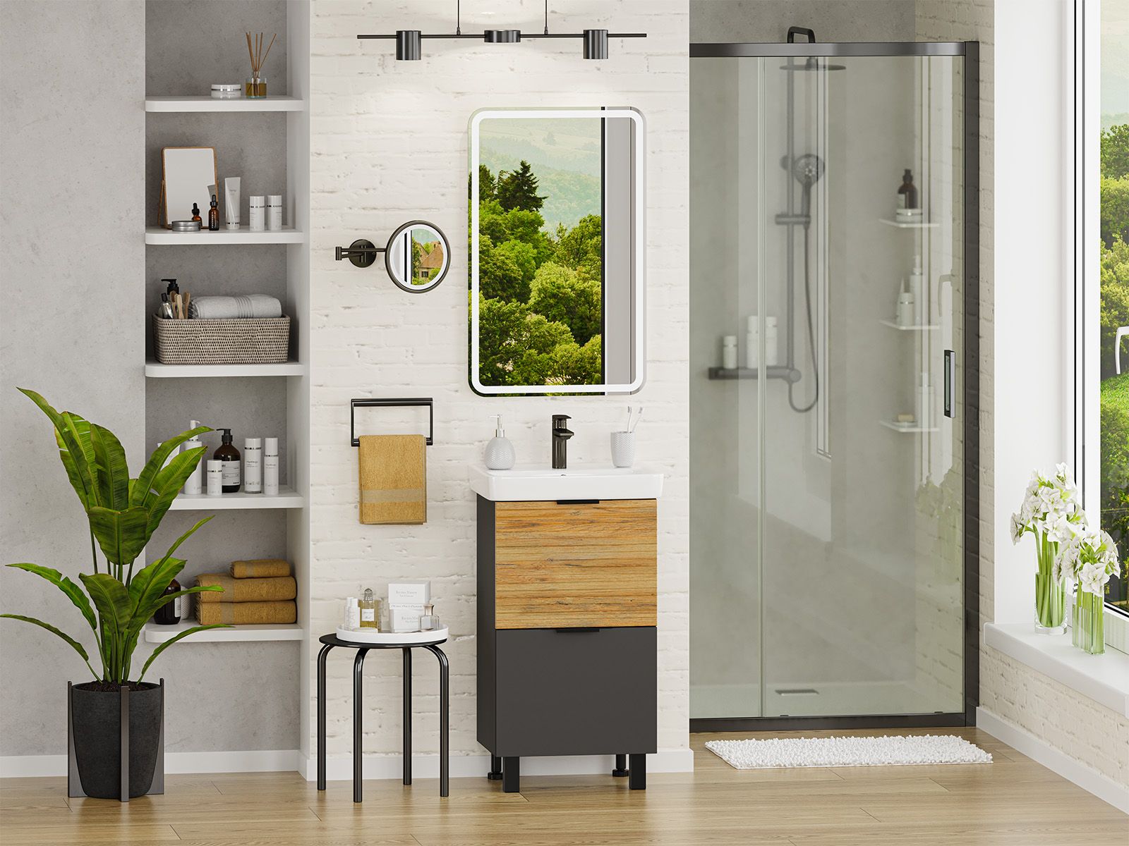 Напольная тумба под раковину Misty Форест 50см дуб Вотан/антрацит купить