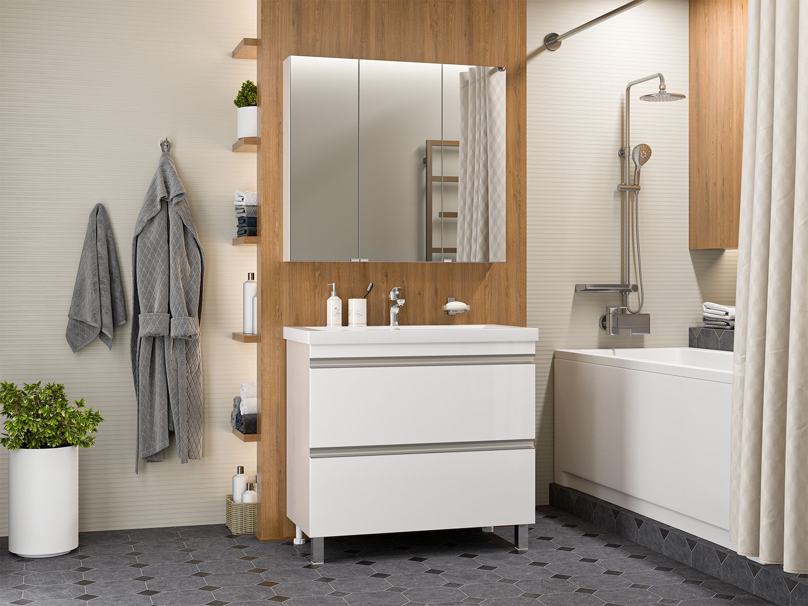 Напольная тумба под раковину Misty Ингрид 90см белый купить