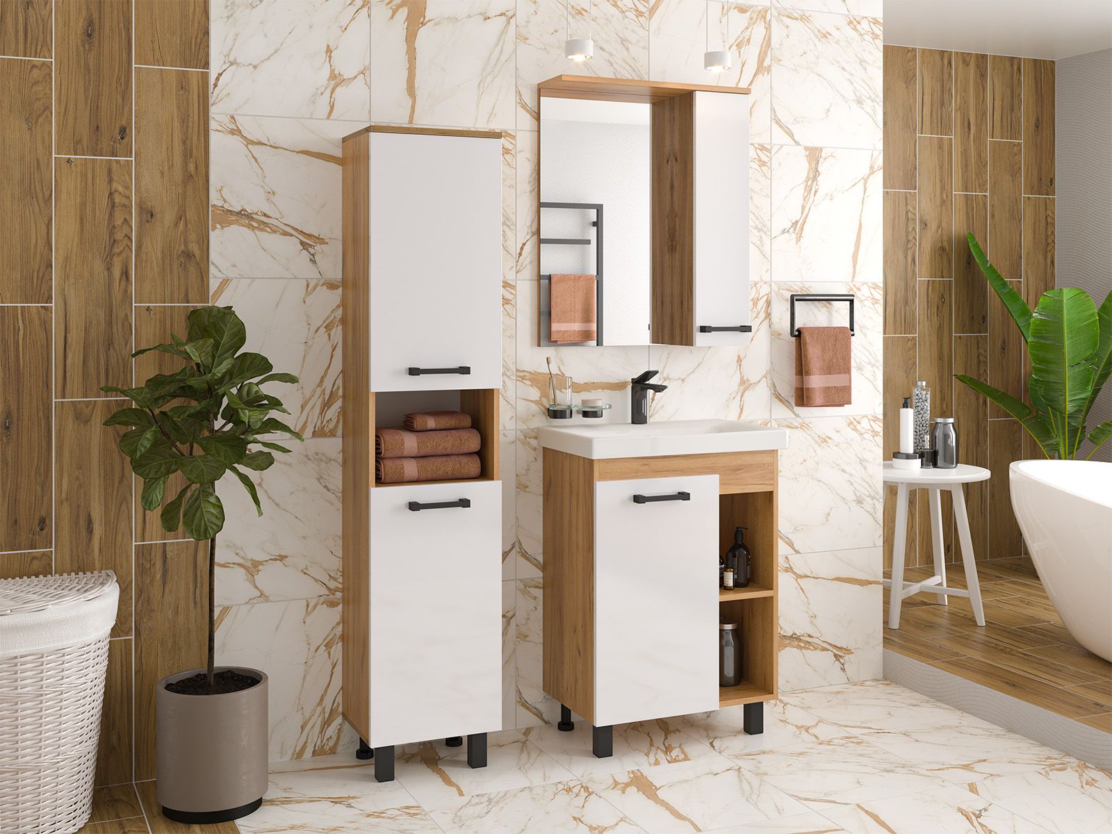 Напольная тумба под раковину Misty Крафт 60см белый/дуб крафт золотой купить