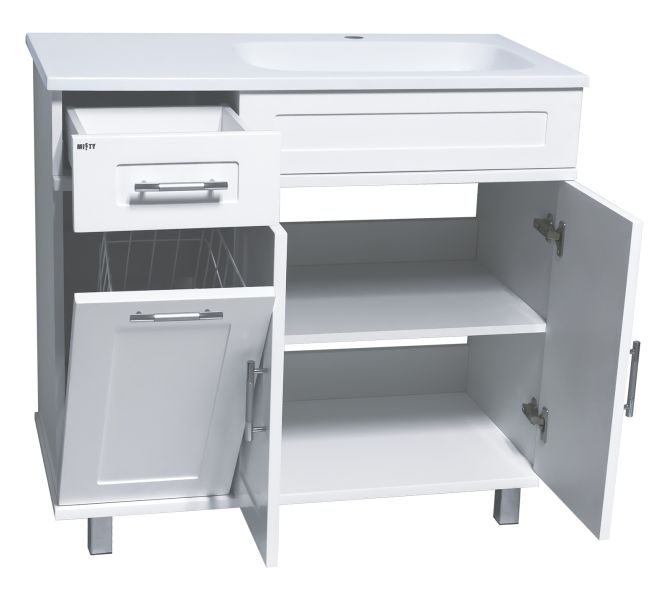 Напольная тумба под раковину Misty Купер 90см правая с бельевой корзиной белый