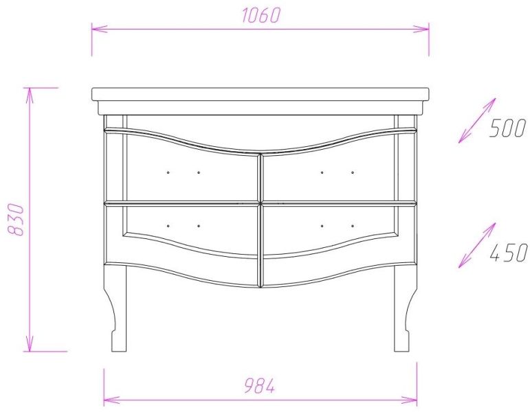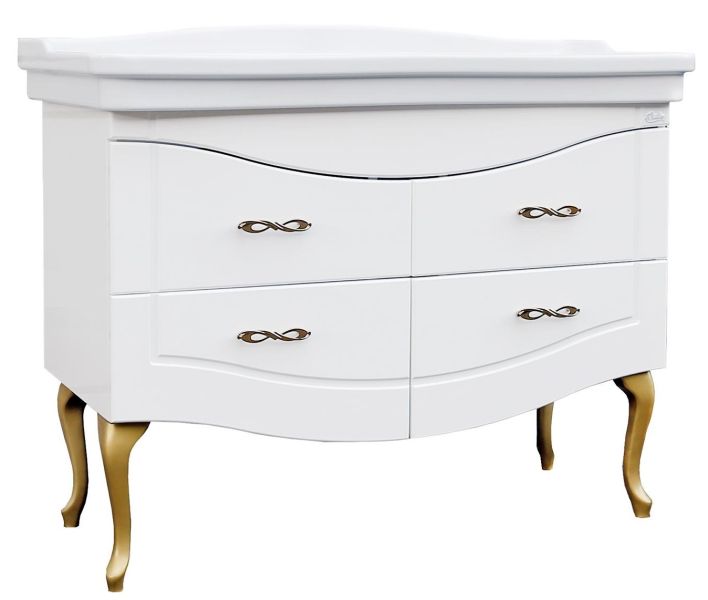 4 изогнутых ножки и 4 фигурных ручки цвета бронзы идут в комплекте с тумбой.