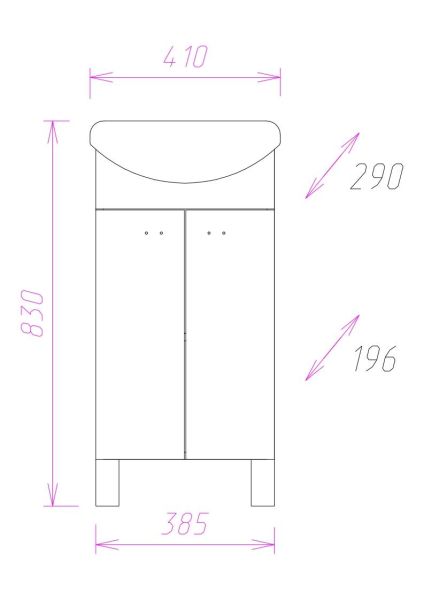 Размеры тумбы без учета раковины и ножек: 38*20*68 см.