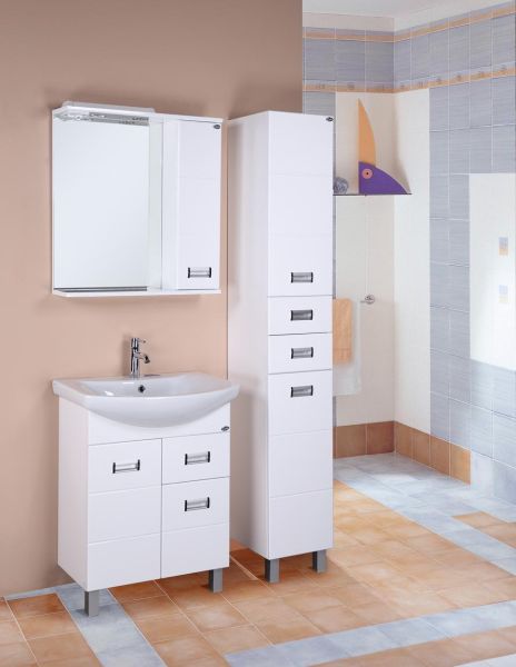 Глянцевый белый цвет фасада, ненавязчивая горизонтальная фрезеровка, врезные хромированные ручки и аккуратная лаконичность - все это позволяет коллекции Балтика стать центральным звеном интерьера ванной комнаты.