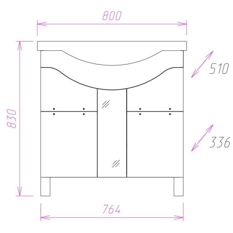 Размеры тумбы без учета раковины и ножек 76x34x68 cм.