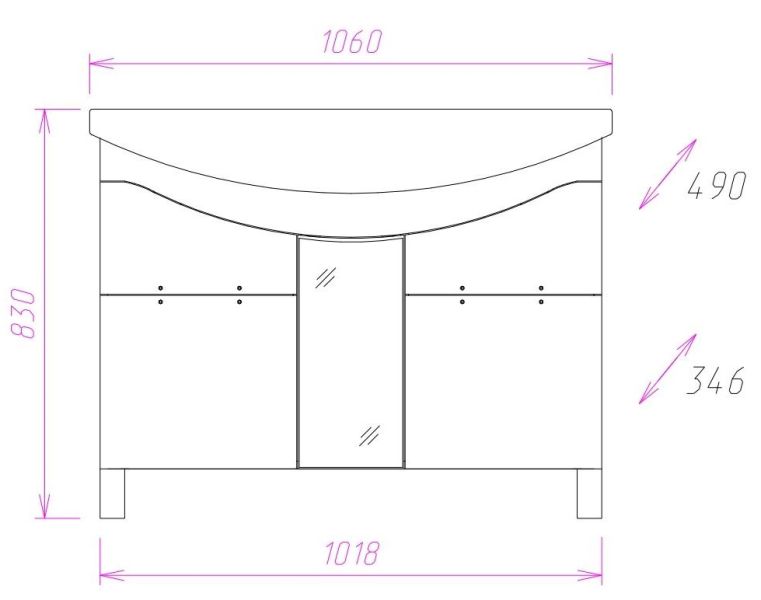 Размеры тумбы без учета раковины и ножек 102x35x68 cм.