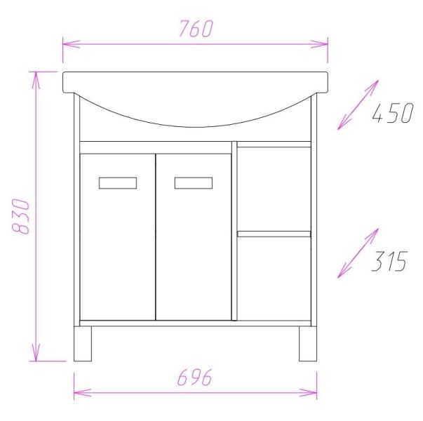Размеры тумбы без учета раковины и ножек: 70х31x68 см.