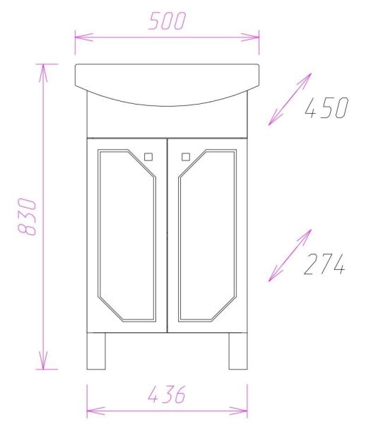 Размеры тумбы без учета раковины и ножек: 44х27х68 см.
