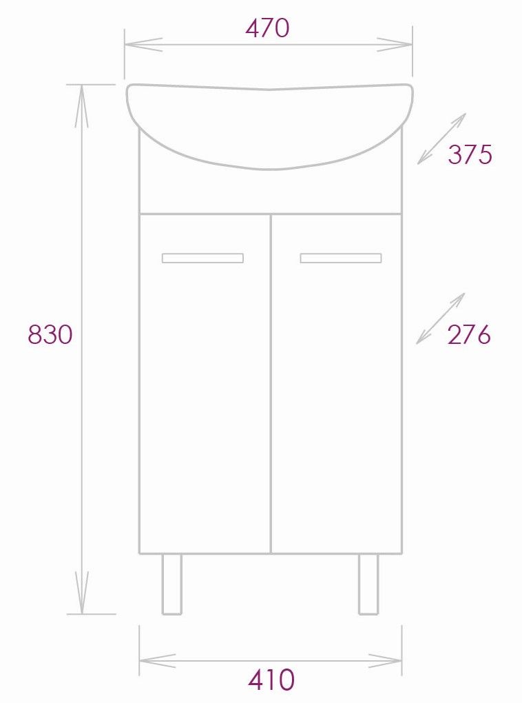 Размеры тумбы без учета раковины и ножек: 41х28х68см..