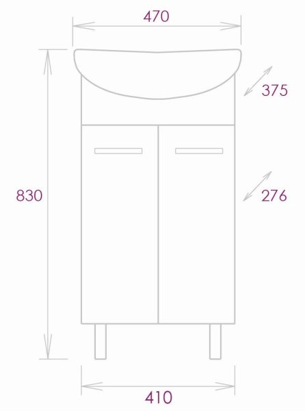 Строгие формы без декора и стильные хромированные ручки на двух распашных дверях, скрывают просторное внутреннее пространство с полкой для размещения необходимых бытовых принадлежностей.