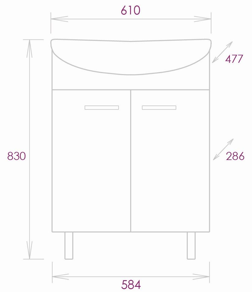 Размеры тумбы без учета раковины и ножек: 58х29х68 см.