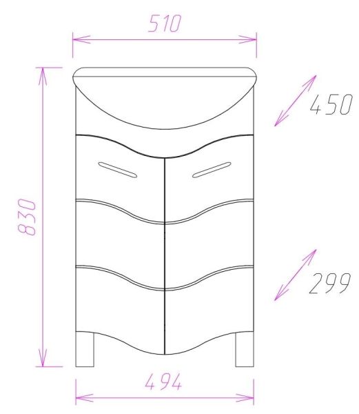 Размеры тумбы без учета раковины и ножек 49х30х75 см.