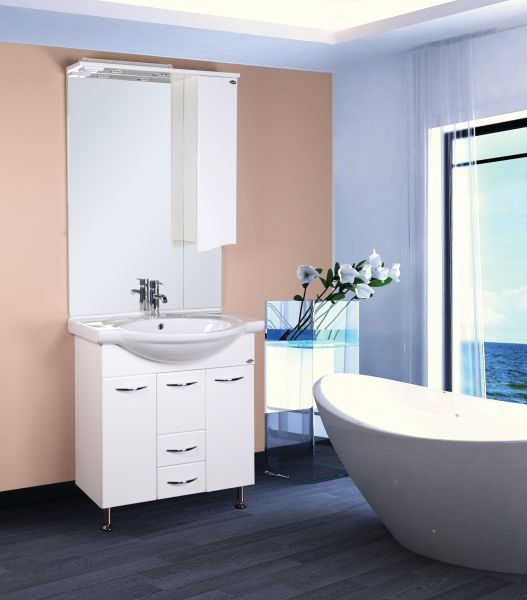 Onika Моника 75 - простая напольная тумба для ванной комнаты с обширным функционалом.