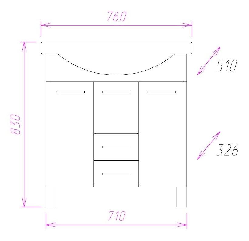 Размеры тумбы без учета раковины и ножек 71х33х68см.