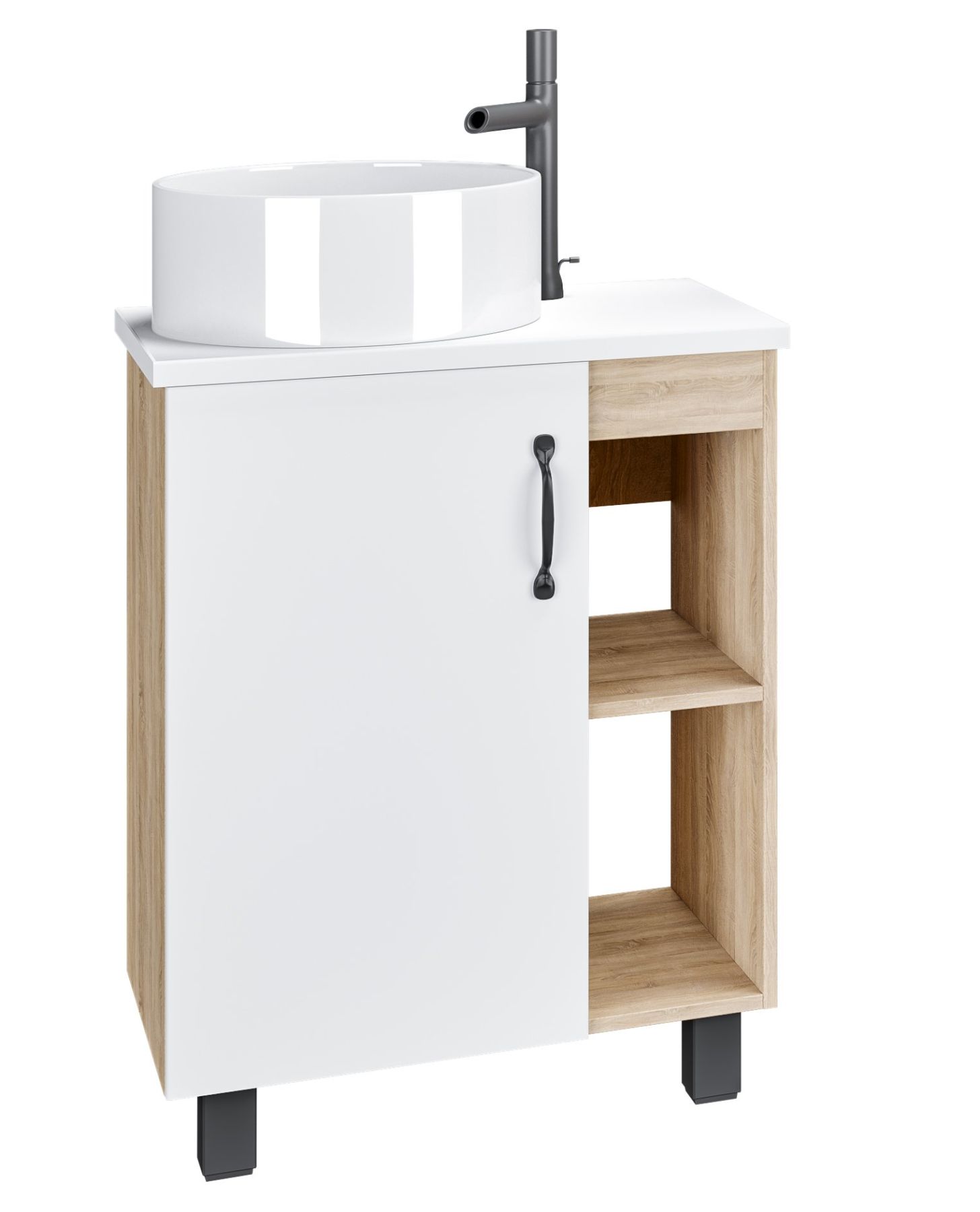Размеры тумбы без учета раковины и ножек 56x38x68 см.