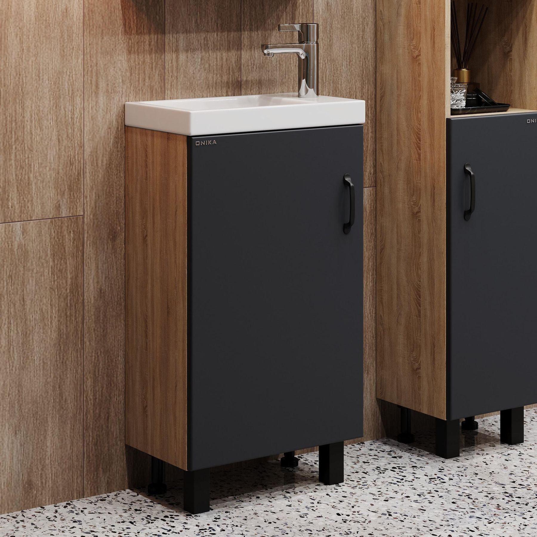 Напольная тумба под раковину Onika Тимбер 104509 45см серый матовый/дуб сонома купить
