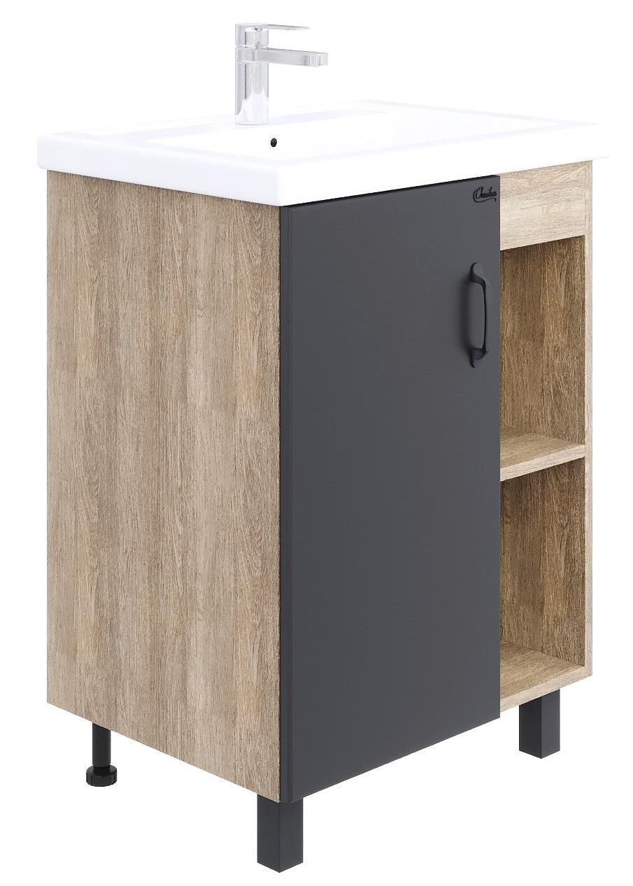 Напольная тумба под раковину Onika Тимбер 106141 60см серый матовый/дуб сонома купить
