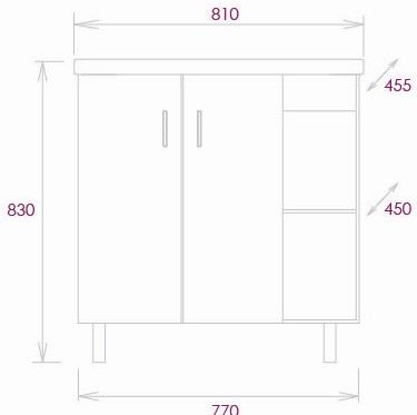 Размеры тумбы без учета раковины и ножек 77x45x68 cм.