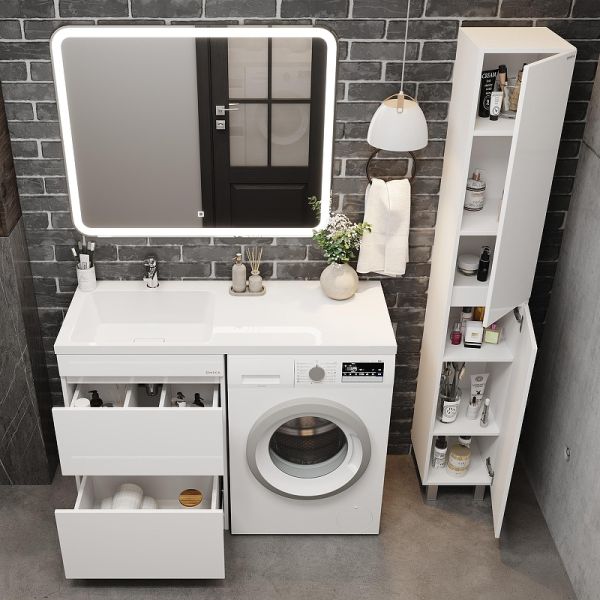 Напольная тумба Onika Милтон 48 станет отличным решением для совмещения со стиральной машиной.