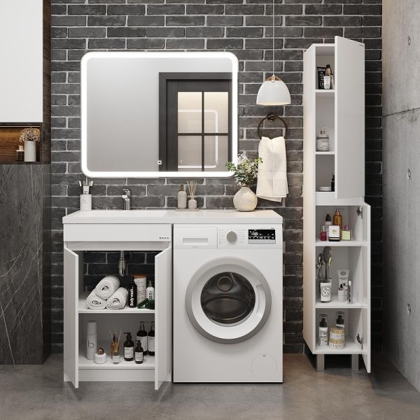 Напольная тумба Onika Милтон Нова 58 станет отличным решением для совмещения со стиральной машиной.