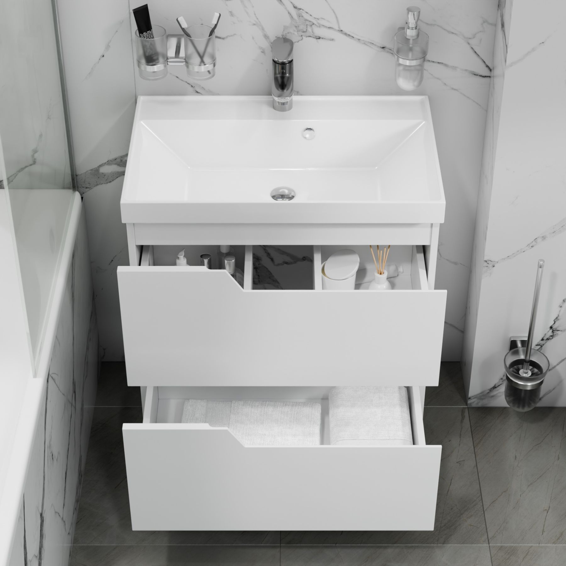 · Универсальность установки: Выберите вариант, который идеально подойдет для вашей ванной – напольная или подвесная тумба
