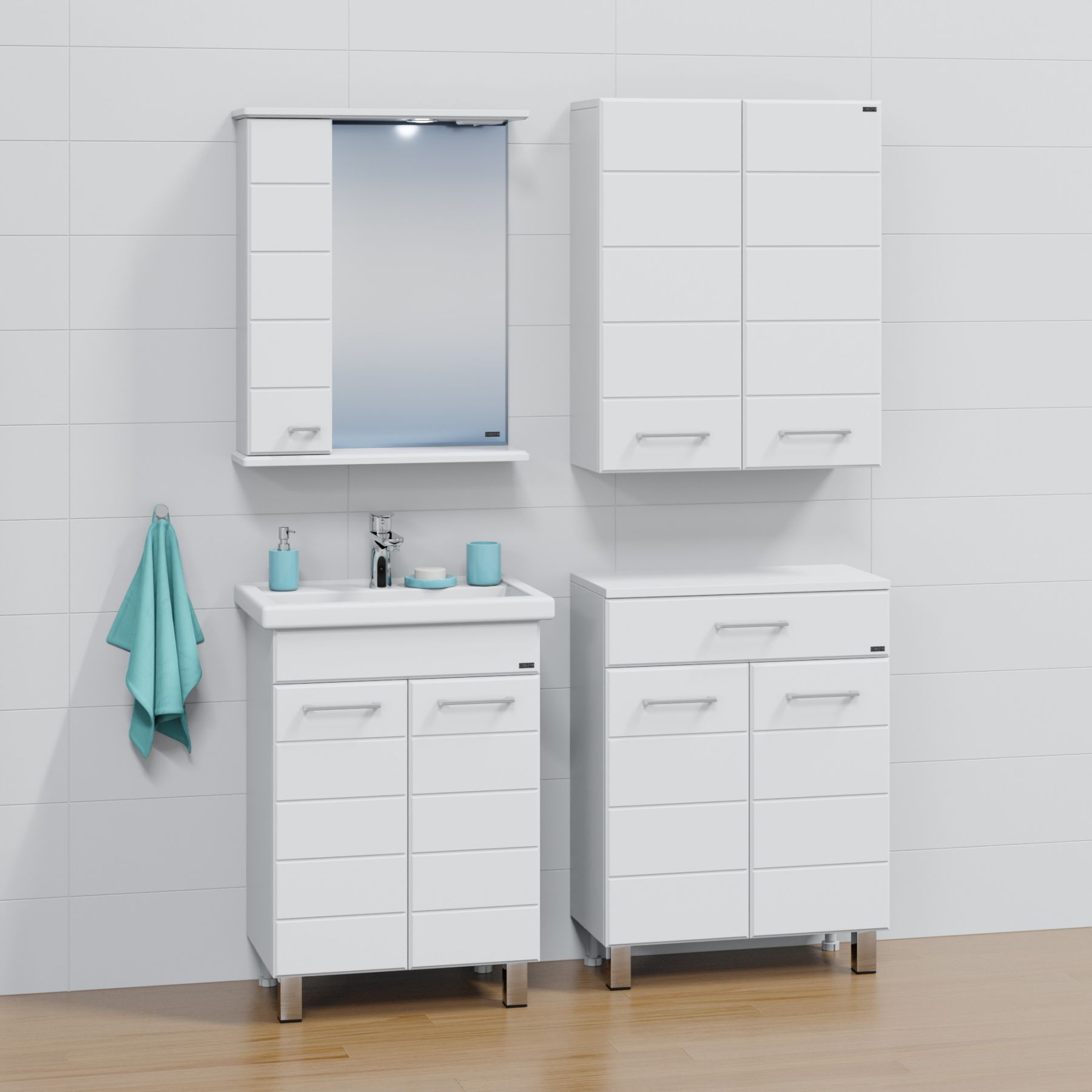 Комплектация: Ручка хром - 2, петли с плавным закрыванием - 2 шт., ножка хром – 2 шт, ножка пластик – 2шт