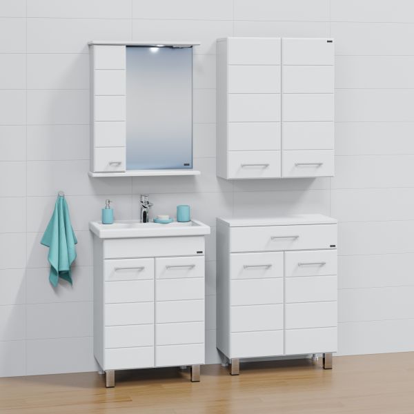 Тумба напольная Омега 60 для умывальника Фостер 60. Корпус изделия выполнен из влагостойкого ЛДСП, фасад из МДФ и покрыт пленкой. Она оборудована двумя дверцами, что обеспечивает лёгкий доступ к её содержимому.