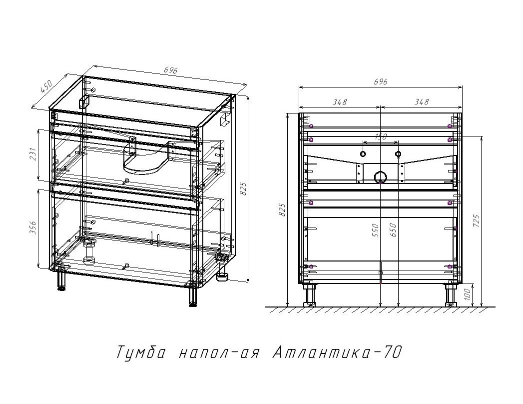 Тумба под раковину Style Line Атлантика 70, СС-00002342, 70 см, напольная, Люкс Plus антискрейч, белаяРаковина приобретается отдельно.