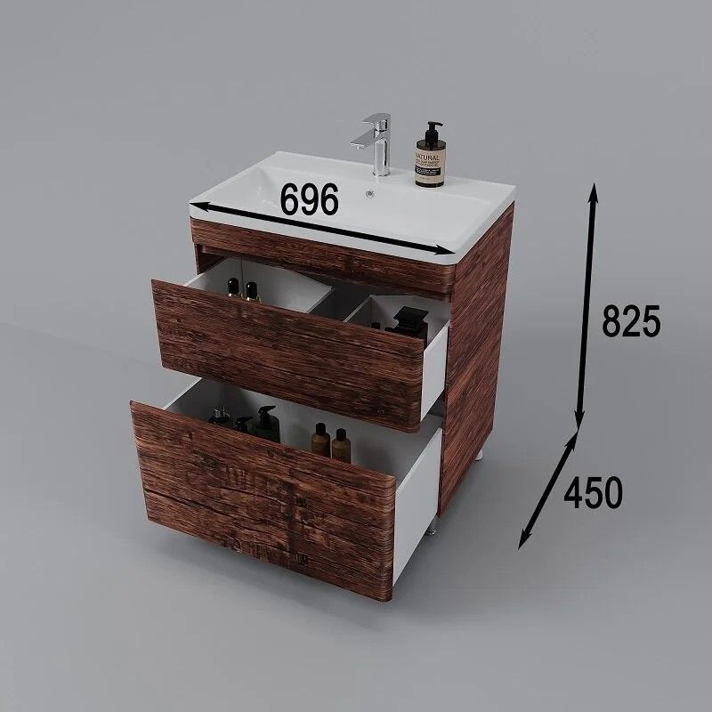 Тумба под раковину Style Line Атлантика 70, СС-00002343, 70 см, напольная, Люкс Plus, старое деревоРаковина приобретается отдельно.
