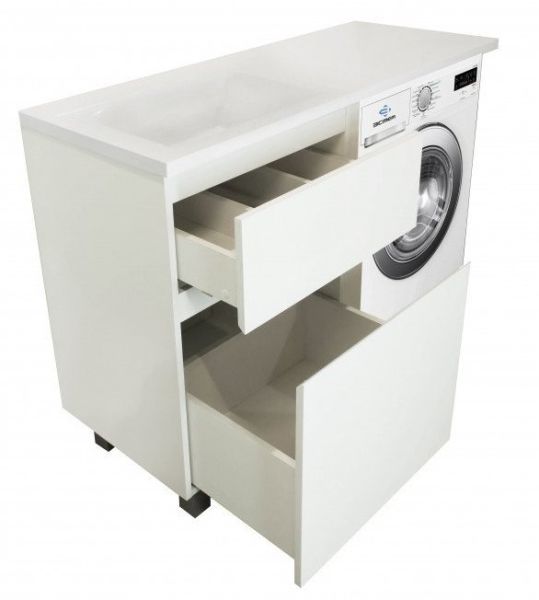 Коллекция мебели для ванной комнаты Dallas Luxe покоряет своей удивительной простой и функциональностью. Стильная лаконичная тумба, укомплектована раковиной из литьевого мрамора с удобной чашей. Стиральная машина устанавливается под столешницей, за счет чего экономит место в ванной комнате. В тумбе имеются два ящика. Нижний ящик тумбы – широкий и вместительный – предназначен для крупных предметов, а в верхнем имеется специальная организация пространства, позволяющая хранить мелкие вещи.
