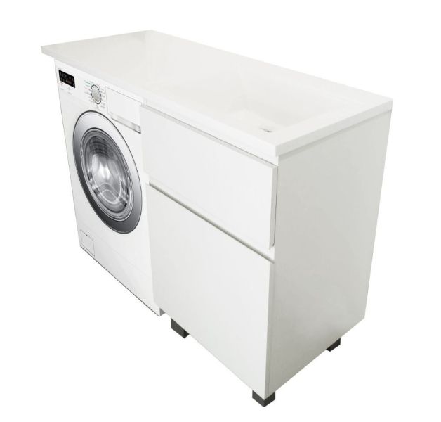 Коллекция мебели для ванной комнаты Dallas Luxe покоряет своей удивительной простой и функциональностью. Стильная лаконичная тумба, укомплектована раковиной из литьевого мрамора с удобной чашей. Стиральная машина устанавливается под столешницей, за счет чего экономит место в ванной комнате. В тумбе имеются два ящика. Нижний ящик тумбы – широкий и вместительный – предназначен для крупных предметов, а в верхнем имеется специальная организация пространства, позволяющая хранить мелкие вещи.