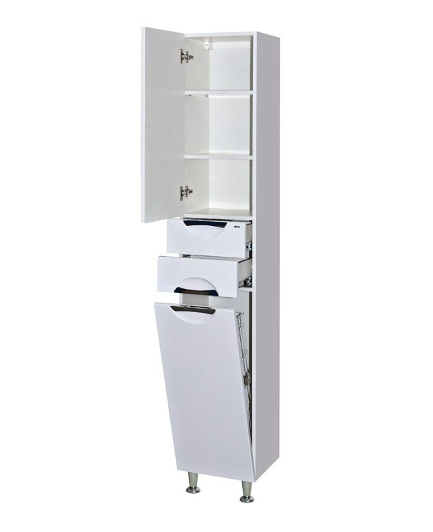 Напольный шкаф - пенал Misty Орхидея 35см с бельевой корзиной левый белый купить