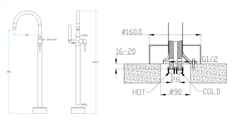 Смеситель Boheme Uno для ванны напольный,