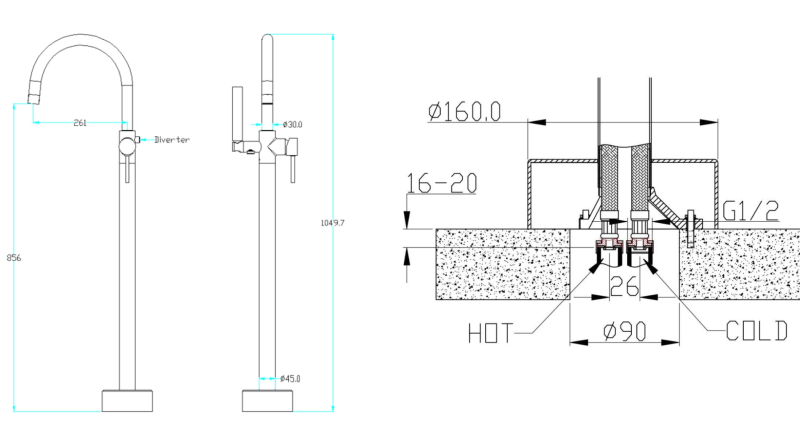 Напольный смеситель для ванны Boheme Uno 469-GM антрацит