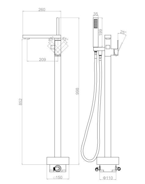 Напольный смеситель для ванны DQ Bayern.Liszt DA1516006 графит