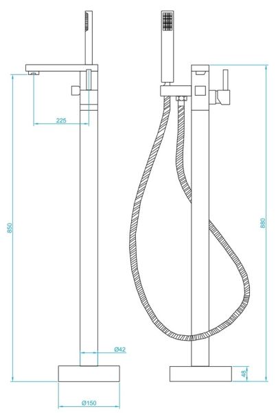 Ощутите всю роскошь стиля с напольным смесителем! Возможность установить смеситель в любую точку рядом с ванной позволит воплотить в жизнь любую планировку и сохранит целостность стен.Этот комплект мы разработали «под ключ» - в нем есть всё: стойка, смеситель и ручной душ.Длинный шланг 1.5 м, очень мягкий и гибкий, подарит ощущение свободы пользователю даже самого высокого роста, а насыщенная воздушными пузырьками вода, благодаря встроенному аэратору, позволит получить больший охват даже при компактном размере лейки.Кроме того, аккуратное рассеивание воды исключает возможность разбрызгивания, что важно, когда у вас отдельно стоящая дизайнерская ванна.