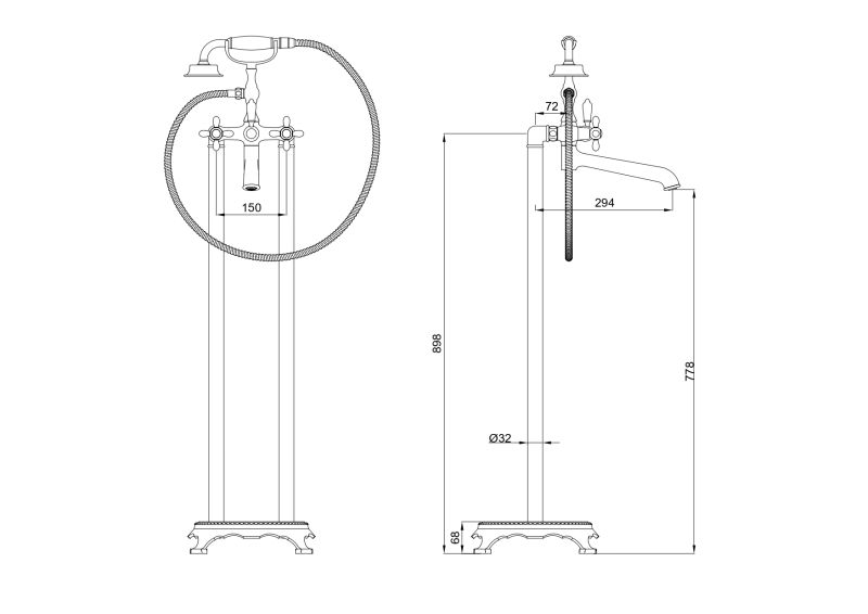 Напольный смеситель для ванны Wonzon & Woghand Retro WW-88649020-PG глянцевое золото купить