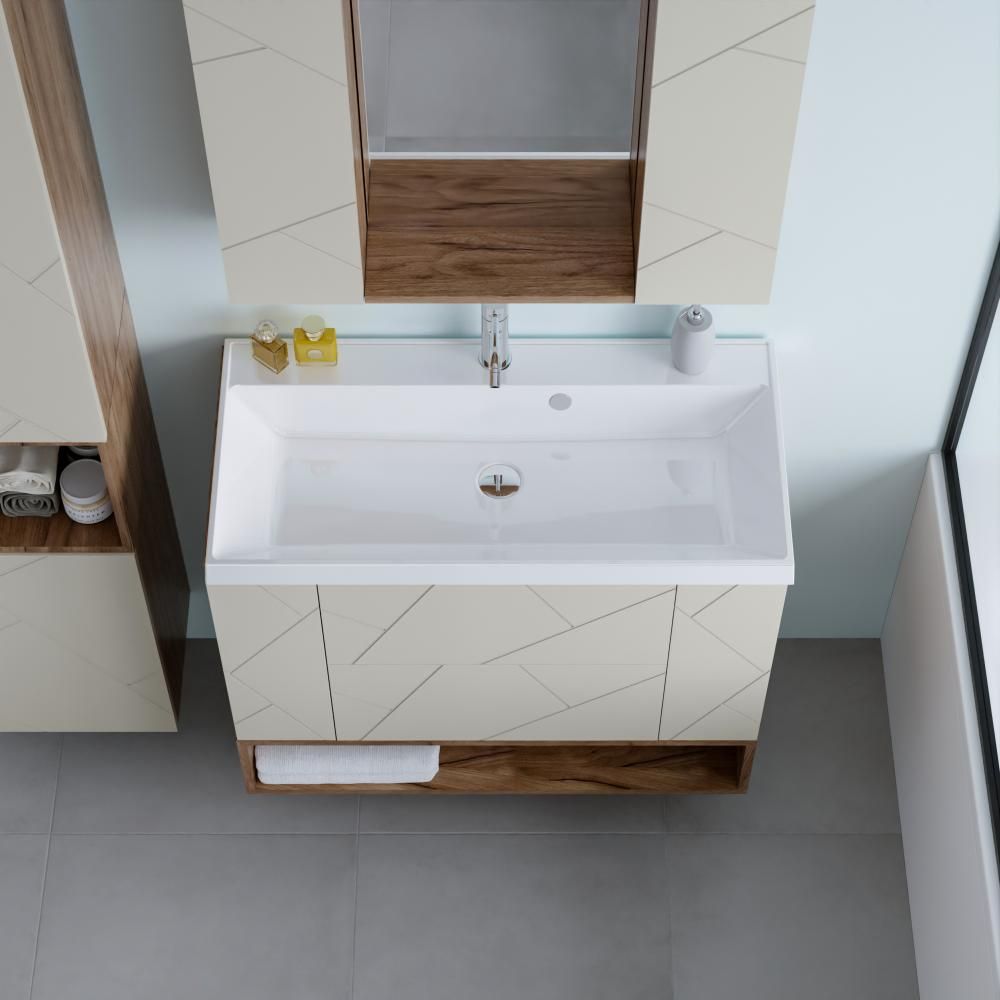 Ниша является дополнительным элементом к тумбе под раковину. Благодаря нише у тумбы появляется дополнительная полка для хранения предметов гигиены, полотенец и других принадлежностей.
