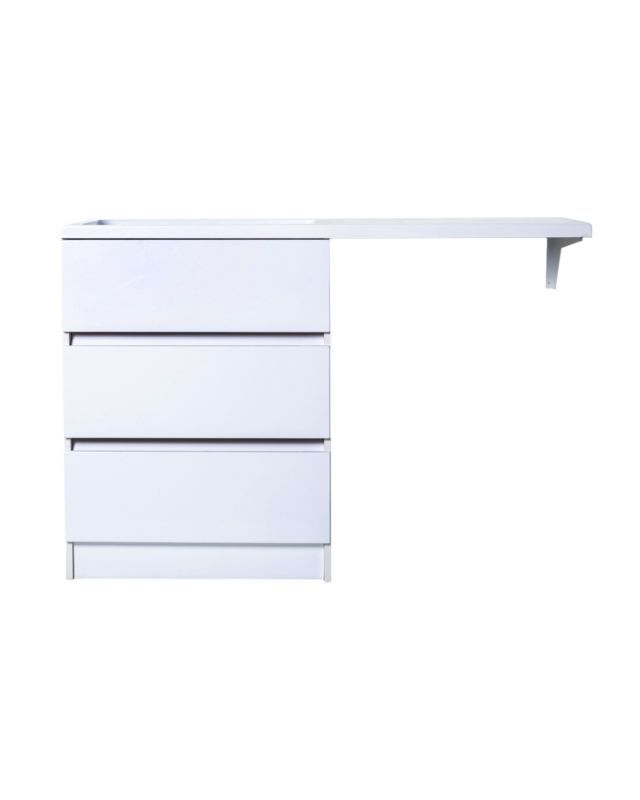 Тумба с раковиной под стиральную машину Orange Optima, левая, белый, ST-70TUW+RALOrange OPTIMA ST-70TUW+RAL Тумба напольная с левой раковиной под стиральную машину. Предназначена для использования в ванных комнатах с повышенной влажностью. Тумба укомплектована тремя выдвижными ящиками. Фасад - МДФ в цвете белый глянец, покрытие пленка ПВХ. Корпус - ЛДСП в цвете белый глянец. Раковина с одним отверстием под смеситель (материал - искусственный камень).В комплекте ножки подпятники 4 шт (регулировка по высоте до 10 мм) и кронштейн для крепления крыла раковины.