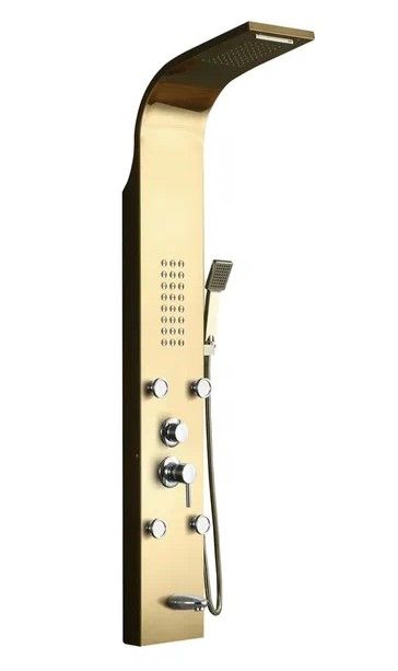 • Комплектация: душевая панель, душевая лейка, смеситель, шланг для душа, верхний душ, крепеж, инструкция