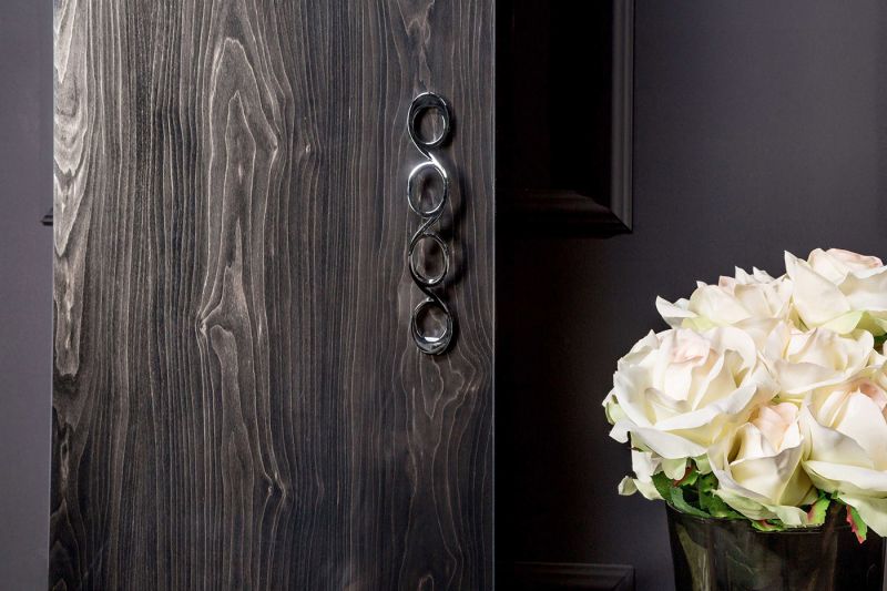 • Внутренняя сторона задней стенки шкафа-пенала отделана вручную эко-кожей с маркировкой Armadi Art и строчкой ручной работы