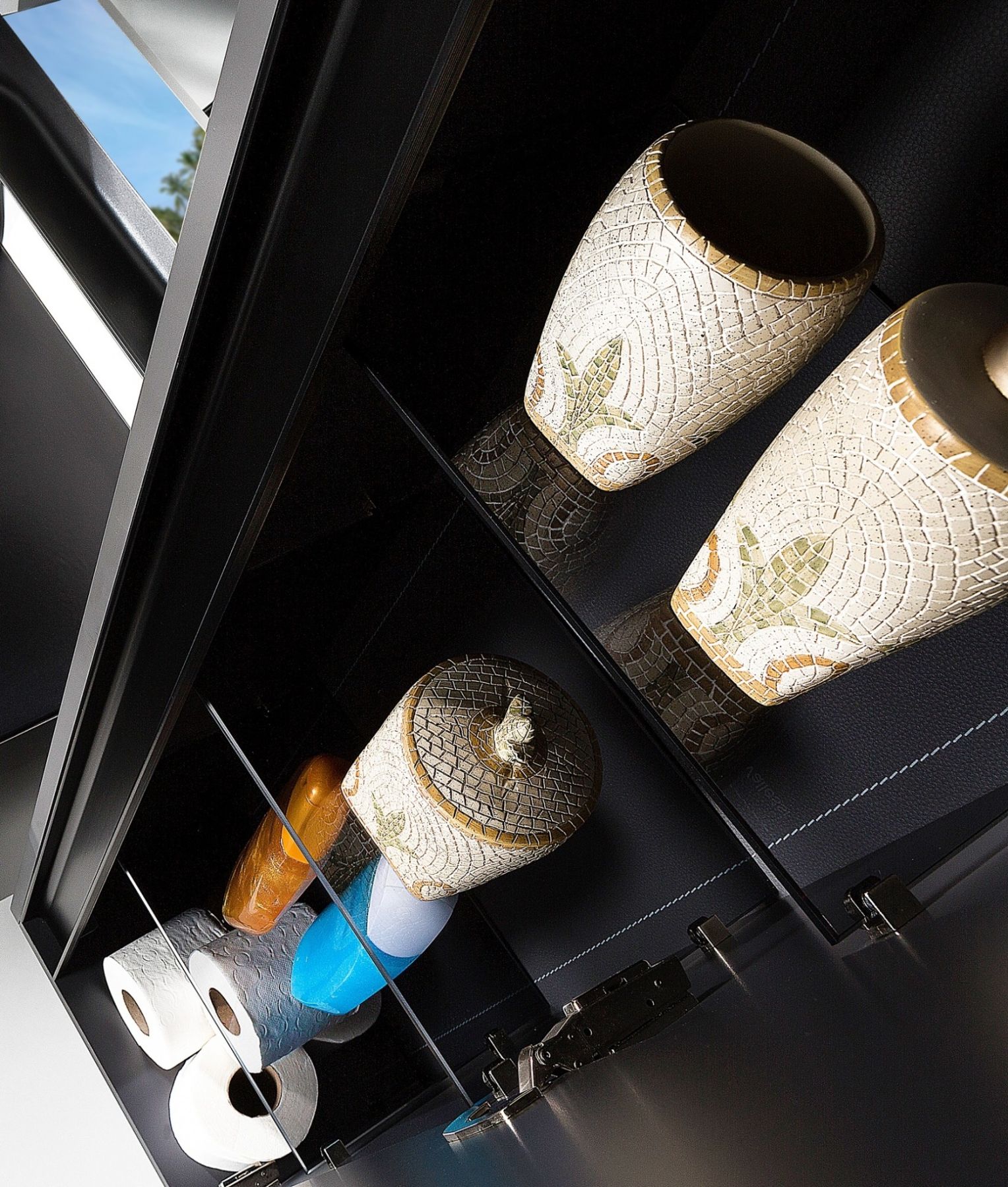 • Вкладные полки из тонированного каленого стекла